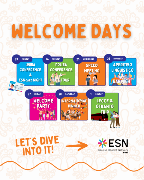 From 23 of February to 1 of March, join us for an unforgettable week packed with a lot of events: everything you need to start the semester off right here in Bari!